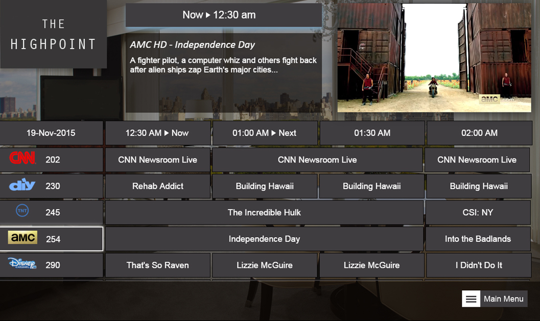 Guest Tv Interactive understands that your guests expect nothing less than a residential HD interactive experience. The Guest Tv Interactive system comes standard with Pro:Idiom decryption; eliminating the need to purchase expensive Pro:Idiom TVs. Guest Tv Interactive enables hotels to customize guest-room TVs by controlling the brand messaging on the screen. Our service comes standard with a custom-branded Welcome Page, Channel Banner, and Interactive Program Guide with licensed guide data for all North American content providers. Additionally, Weather, News, and Flight updates are included as part of our standard offering. Guest Tv Interactive 's in-house UI customization team allows you to combine videos, photos, graphics, text and more for a truly unique in-room entertainment experience.